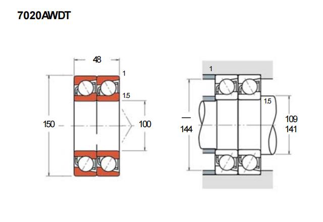 7020AWDT轴承属于角接触球轴承类别,采用DT配对形式制造。该型号的安装尺寸为内径100毫米、外径150毫米,厚度为48毫米。此类配对轴承通常由两个单列角接触球轴承以特定的预载荷和轴向游隙组合而成,形成背对背的配置方式,能够同时承受径向载荷和双向轴向载荷。