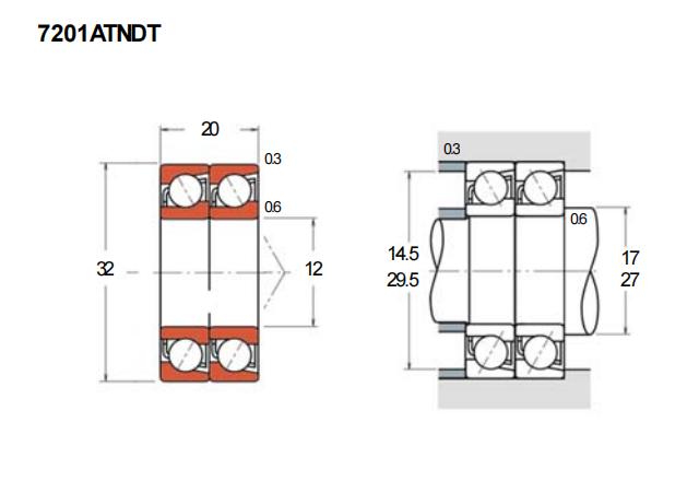 7201ATNDT是一款角接触球轴承,其基本尺寸为内径12毫米、外径32毫米、厚度20毫米。该轴承属于角接触球轴承类别中的DT配对形式,通常由两套单个轴承按特定预载荷要求组合而成,能够同时承受径向和轴向联合载荷。