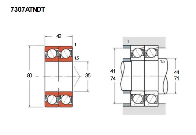 7307ATNDT属于角接触球轴承类别,采用DT配对形式。其基本尺寸为内径35毫米,外径80毫米,总厚度42毫米。这种轴承设计能够同时承受径向载荷和轴向载荷,适用于两个方向的联合载荷工况。