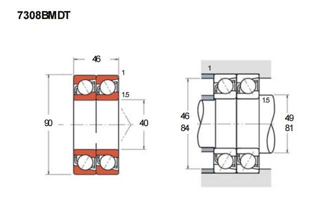 后缀列表:【B:40° 接触角】【M:实体黄铜保持架】【DT:双列串联(<<或>>)配对】