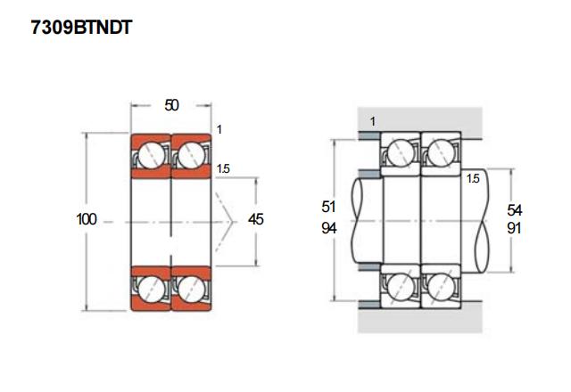 7309BTNDT轴承是一款角接触球轴承,其基本尺寸为内径45毫米、外径100毫米、厚度50毫米。该轴承属于DT配对形式,通常适用于需要承受联合载荷并以径向载荷为主的场合。配对设计使轴承能够提供一定的双向轴向刚性,有助于提升支承结构的稳定性。