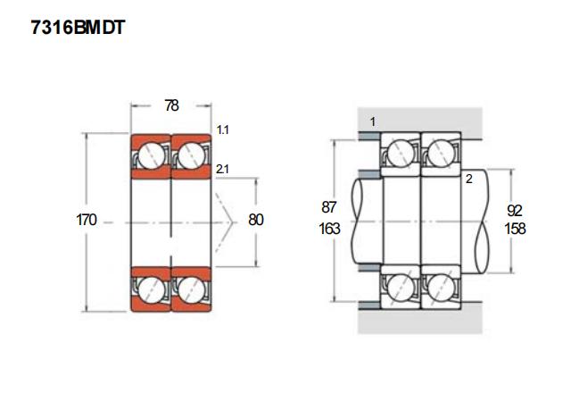 在精度等级方面,7316BMDT可提供P0、P6或P5级选项,不同精度等级适用于对运转平稳性和定位精度有不同要求的应用环境。此类轴承常见于中等转速工况,如工业传动系统、机床主轴或齿轮箱等设备中。其设计有助于调整内部游隙,从而适应不同的预紧需求和工作温度变化。