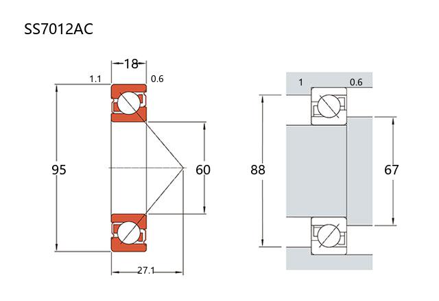 SS7012AC属于不锈钢角接触球轴承系列,其基本尺寸为内径60毫米、外径95毫米、厚度18毫米。该型号轴承采用AC接触角设计,能够同时承受径向和轴向联合载荷,尤其适用于轴向负荷较高的工况条件。