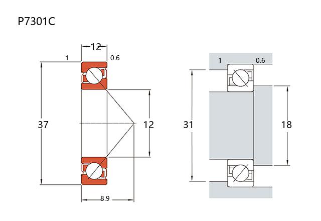 P7301C型轴承属于P7000系列的塑料型角接触球轴承。该型号轴承的内径为12毫米,外径为37毫米,厚度为12毫米,结构较为紧凑。