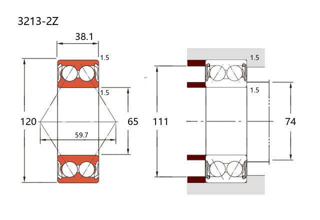 3213-2Z是一款双列角接触球轴承,属于常见的3000系列。其基本尺寸为内径65毫米,外径120毫米,厚度38.1毫米。该结构设计使其能够同时承受径向载荷和双向的轴向载荷,相较于单列轴承具有更高的刚性。