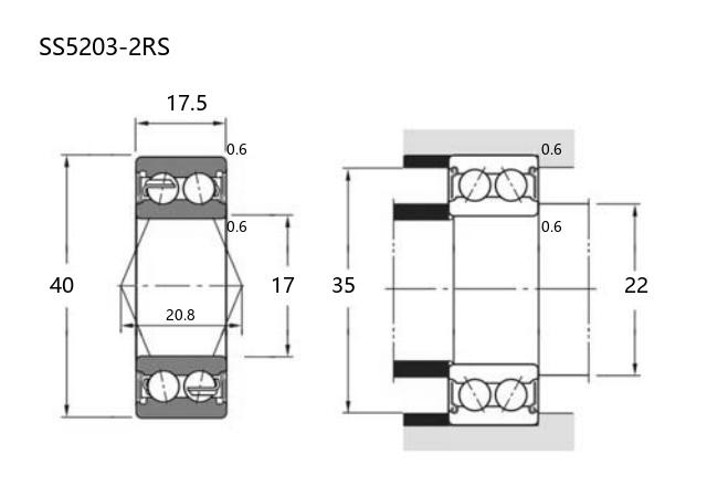 SS5203-2RS是一款双列角接触球轴承,属于不锈钢材质的SS5000系列。其基本尺寸为内径17毫米、外径40毫米、厚度17.5毫米。该轴承在设计上整合了两排钢球,使得其能够同时承受径向负荷和双向的轴向负荷,这种结构特性有助于提升轴承在运转过程中的刚性。