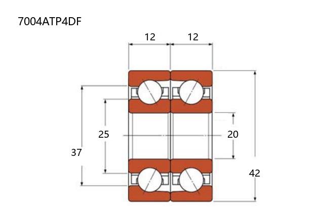 后缀列表:【A:30° 接触角】【T:聚酰胺尼龙保持架】【P4:P4 级精度】【DF:双列面对面(\ /)配对】