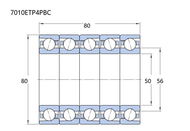 后缀列表:【E:25° 接触角】【T:聚酰胺尼龙保持架】【P4:P4 级精度】【PBC:五列串联背靠背串联串联(<<>>>)配对】