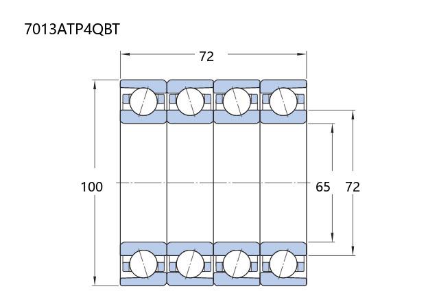 后缀列表:【A:30° 接触角】【T:尼龙保持架】【P4:ISO 4级精度】【QBT:四列背靠背串联串联(<>>>)配对】