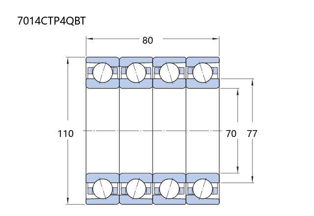 后缀列表:【C:15° 接触角】【T:尼龙保持架】【P4:ISO 4级精度】【QBT:四列背靠背串联串联(<>>>)配对】