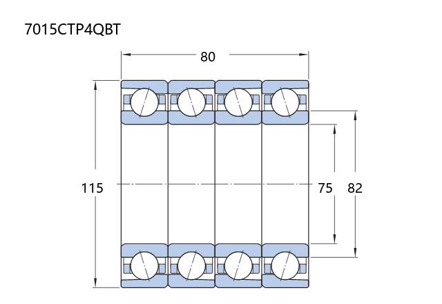 后缀列表:【C:15° 接触角】【T:尼龙保持架】【P4:ISO 4级精度】【QBT:四列背靠背串联串联(<>>>)配对】