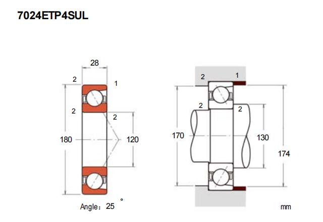 后缀列表:【E:接触角 25°】【T:树脂保持架】【P4:ISO 4级精度】【SU:单个万能组合】