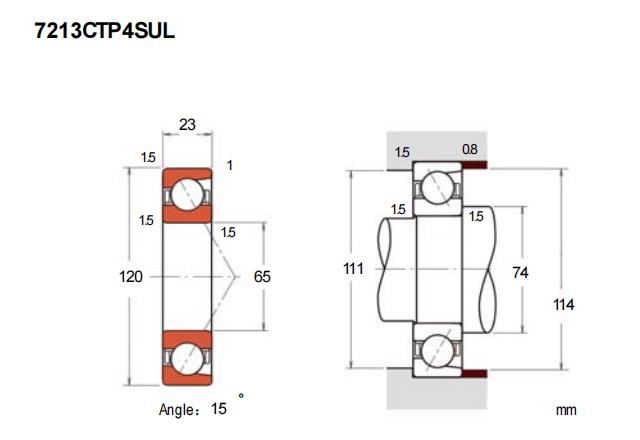 7213CTP4SU属于精密角接触球轴承中的标准型产品,其基本尺寸为内径65毫米、外径120毫米、厚度23毫米。该型号轴承通常采用聚酰胺保持架,材质选择兼顾强度与运行平稳性。接触角设计使轴承具备承受双向轴向负荷与径向负荷的能力,适用于复合载荷工况。