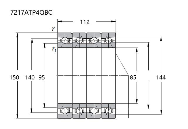 后缀列表:【A:30° 接触角】【T:尼龙保持架】【P4:ISO 4级精度】【QBC:四列串联背靠背串联(<<>>)配对】