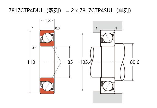 7817CTP4DU是一款精密角接触球轴承,符合标准型设计。其基本尺寸为内径85毫米、外径110毫米、厚度26毫米。该型号属于超高精密轴承范畴,通常适用于对旋转精度和运行稳定性有较高要求的场合。