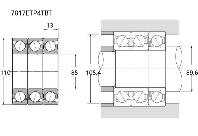 后缀列表:【E:接触角 25°】【T:尼龙保持架】【P4:ISO 4级精度】【TBT:三列背靠背串联(<>>)配对】