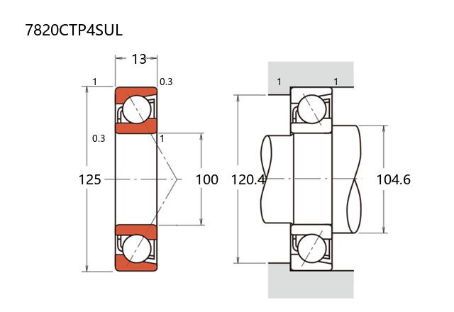 7820CTP4SU属于超高精密角接触球轴承中的标准型产品。其基本尺寸为内径100毫米,外径125毫米,厚度13毫米,结构紧凑。
