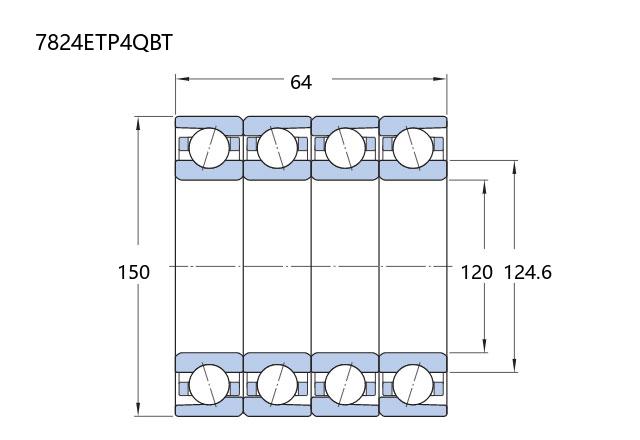 后缀列表:【E:接触角 25°】【T:聚酰胺尼龙保持架】【P4:ISO 4级精度】【QBT:四列背靠背串联串联(<>>>)配对】
