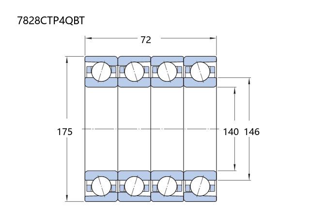 后缀列表:【C:15° 接触角】【T:聚酰胺尼龙保持架】【P4:ISO 4级精度】【QBT:四列背靠背串联串联(<>>>)配对】