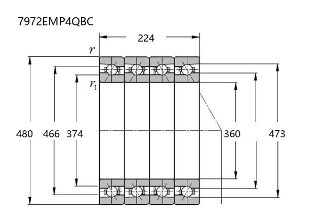 后缀列表:【E:接触角 25°】【M:机加工黄铜保持架】【P4:ISO 4级精度】【QBC:四列串联背靠背串联(<<>>)配对】