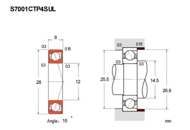 S7001CTP4SU是一款属于超高精密轴承类别的精密角接触球轴承,采用标准密封型-S设计。其基本尺寸为内径12mm、外径28mm、厚度8mm,结构紧凑,适用于空间受限的高精度应用场景。