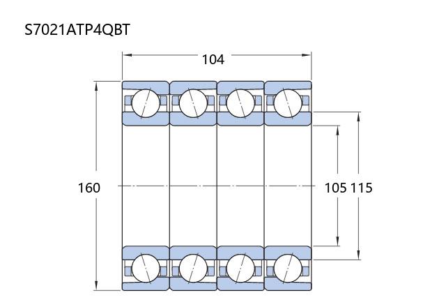 前缀列表:【S:标准密封型】后缀列表:【A:接触角 30°】【T:聚酰胺保持架】【P4:P4 级精度】【QBT:四列背靠背串联串联(/ \ \ \)配对】