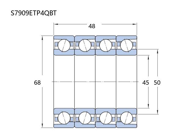前缀列表:【S:标准密封型】后缀列表:【E:25° 接触角】【T:聚酰胺保持架】【P4:P4 级精度】【QBT:四列背靠背串联串联(/ \ \ \)配对】