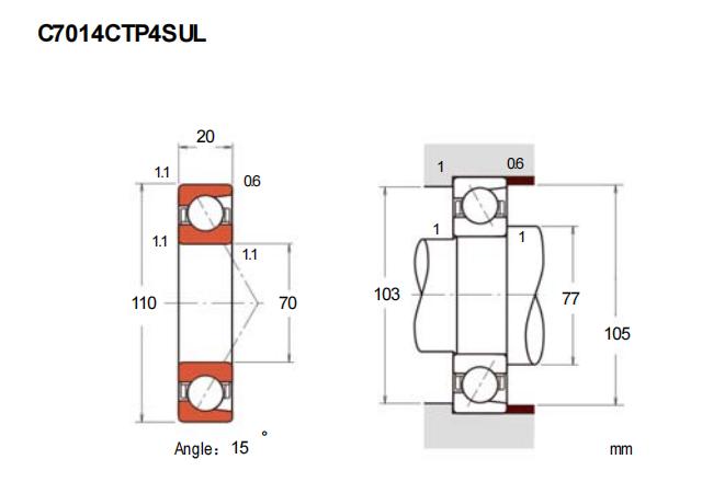 C7014CTP4SU属于超高精密角接触球轴承系列,其内圈和外圈采用高碳铬钢制造,滚动体为陶瓷材质。该轴承基本尺寸为内径70毫米、外径110毫米、厚度20毫米。这类轴承的设计特点在于能够同时承受径向和轴向载荷,接触角度的优化使它在高速运转条件下保持稳定性能。