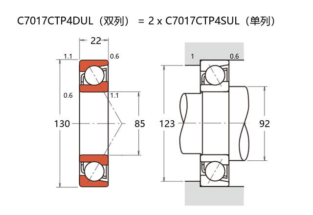 前缀列表:【C:标准陶瓷球型】后缀列表:【C:接触角 15°】【T:聚酰胺尼龙保持架】【P4:P4 级精度】【DU:两个万能组合】