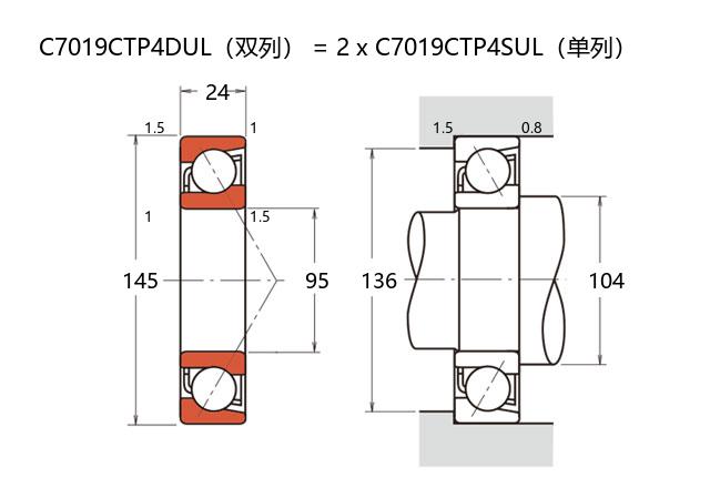 前缀列表:【C:标准陶瓷球型】后缀列表:【C:接触角 15°】【T:聚酰胺尼龙保持架】【P4:P4 级精度】【DU:两个万能组合】