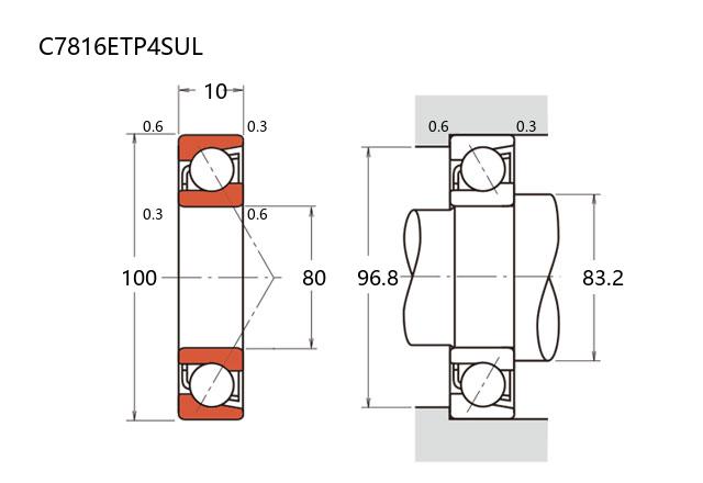 C7816ETP4SU型轴承属于超高精密角接触球轴承系列,其基本结构为内径80毫米、外径100毫米、厚度10毫米的紧凑型设计。该型号采用陶瓷球材质与标准型结构相结合,具备良好的高速适应性及抗磨损性能。在运行过程中,该轴承能够承受双向轴向载荷与部分径向载荷,尤其适用于对旋转精度和动态平衡要求较高的工况环境。