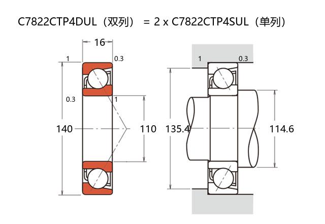 C7822CTP4DU系列轴承属于高精密角接触球轴承,基本尺寸为内径110毫米、外径140毫米、厚度32毫米,符合标准公制规格要求。该产品适用于高转速、高刚性的工况环境,其内外圈及滚动体采用优质钢材制造,并配置陶瓷球以提升性能表现。