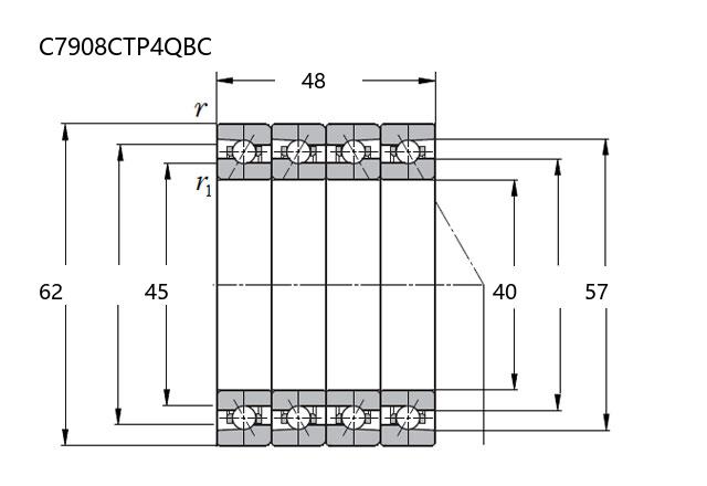 前缀列表:【C:标准陶瓷球型】后缀列表:【C:接触角 15°】【T:聚酰胺尼龙保持架】【P4:P4 级精度】【QBC:四列串联背靠背串联(<<>>)配对】