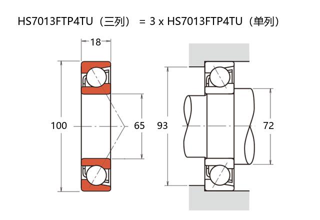 前缀列表:【H:高转速】【S:小球型】后缀列表:【F:接触角 18°】【T:聚酰胺尼龙保持架】【P4:P4 级精度】【TU:三列万能配对】