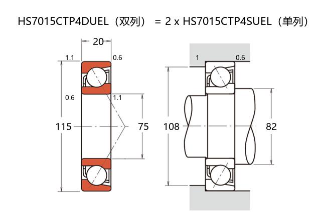 前缀列表:【H:高转速】【S:小球型】后缀列表:【C:15° 接触角】【T:聚酰胺尼龙保持架】【P4:P4 级精度】【DU:两个万能组合】