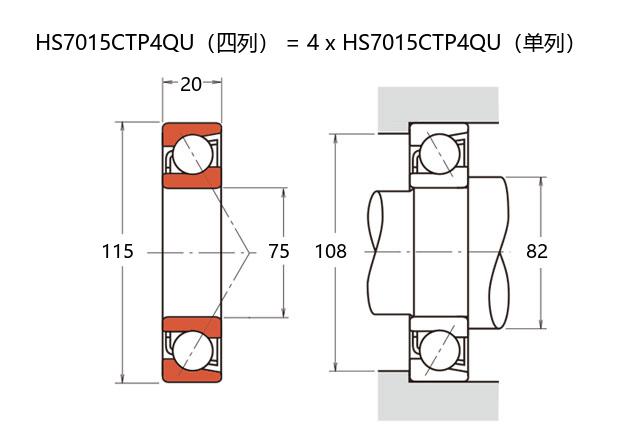 前缀列表:【H:高转速】【S:小球型】后缀列表:【C:15° 接触角】【T:聚酰胺尼龙保持架】【P4:P4 级精度】【QU:四个万能组合】