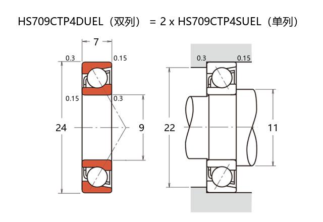 HS709CTP4DU属于超高精密角接触球轴承系列,其结构设计适用于高速运转和小球径应用。该型号轴承的基本尺寸为内径9毫米、外径24毫米、厚度14毫米,紧凑的尺寸使其在空间受限的装置中具有较好的适应性。