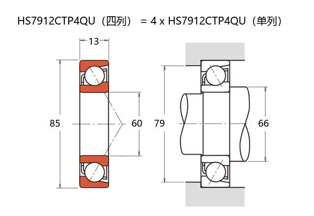 前缀列表:【H:高转速】【S:小球型】后缀列表:【C:15° 接触角】【T:聚酰胺尼龙保持架】【P4:P4 级精度】【QU:四个万能组合】
