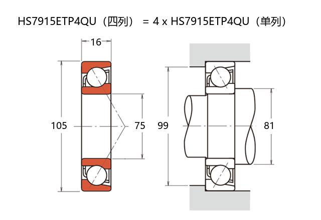 前缀列表:【H:高转速】【S:小球型】后缀列表:【E:接触角 25°】【T:聚酰胺尼龙保持架】【P4:P4 级精度】【QU:四个万能组合】