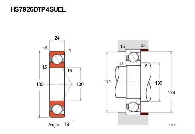 HS7926FTP4SU属于超高精密角接触球轴承系列,专为高速工况设计。其基本尺寸为内径130毫米、外径180毫米、厚度24毫米,结构紧凑且具备轻量化特点。该型号采用小球径设计,有效降低高速运转时的离心力影响,同时优化了接触角以兼顾径向和轴向载荷能力。