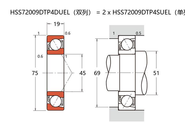 HSS72009FTP4DU属于超高精密角接触球轴承系列,具有优化的内部结构设计和稳定的运行特性。其基本尺寸为内径45毫米、外径75毫米、厚度38毫米,适用于对空间布局要求较高的精密机械系统。