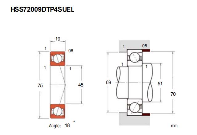 HSS72009FTP4SU属于超高精密角接触球轴承系列,其结构设计针对高精度回转需求。该轴承基本尺寸为内径45毫米、外径75毫米、厚度19毫米,紧凑的尺寸适用于空间受限的精密设备。作为小球密封型产品,其内部采用优化的小直径钢球与保持架组合,有助于降低高速运转时的摩擦发热。
