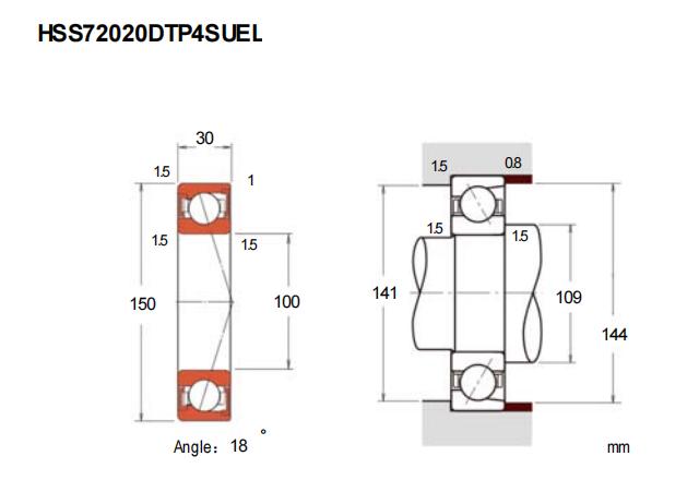 HSS72020FTP4SU是一款超高精密角接触球轴承,属于小球密封型结构。其基本尺寸为内径100mm、外径150mm、厚度30mm,对应的英制尺寸约为内径3.937英寸、外径5.906英寸、厚度1.181英寸。