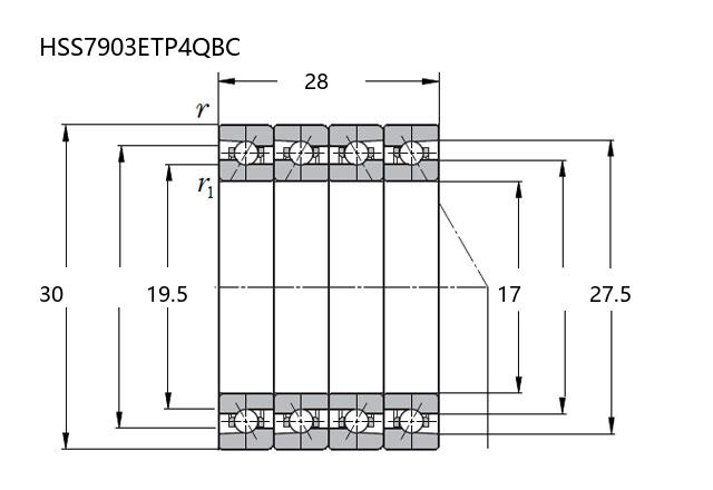 前缀列表:【H:高转速】【S:小球】【S:密封型】后缀列表:【E:接触角 25°】【T:聚酰胺保持架】【P4:P4 级精度】【QBC:四列串联背靠背串联(<<>>)配对】