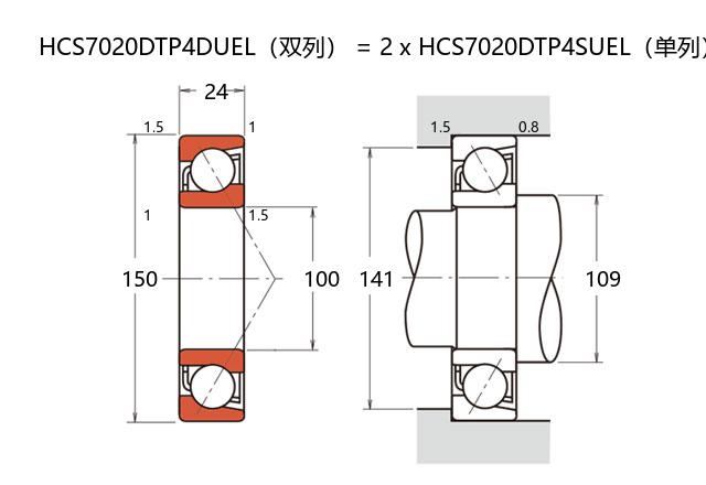 前缀列表:【H:高转速】【C:陶瓷球】【S:密封型】后缀列表:【F:接触角 18°】【T:尼龙保持架】【P4:P4 级精度】【DU:双列万能配对】