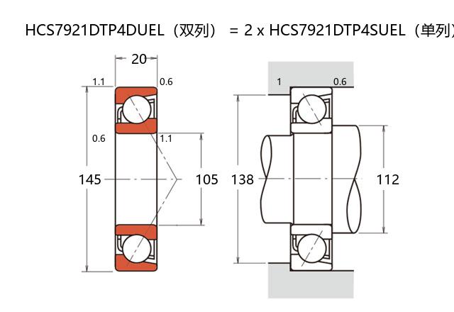 HCS7921FTP4DU属于超高精密角接触球轴承系列,其结构设计针对高精度回转需求进行优化。该型号的基本尺寸为内径105毫米、外径145毫米、厚度40毫米,采用陶瓷小球作为滚动体,在降低旋转惯性的同时增强了耐磨性能。内外圈采用优质钢材并经过特殊热处理工艺,配合精密磨削加工,确保运行过程中的尺寸稳定性。