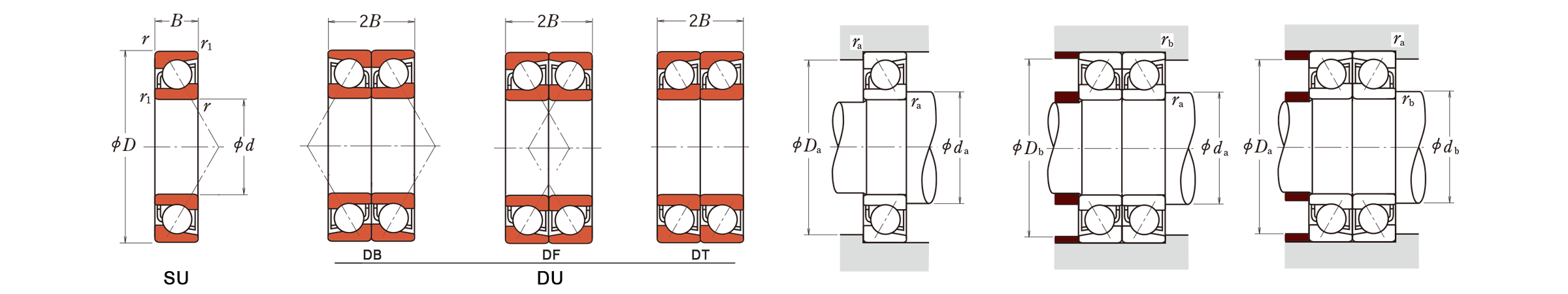 超高速小球密封型 | d | D | B | T | r(min) | r1(min) | Cr | C0r | ||