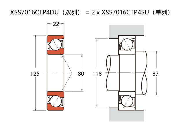 前缀列表:【X:超高转速】【S:小球】【S:密封型】后缀列表:【C:接触角 15°】【T:树脂保持架】【P4:ISO 4级精度】【DU:双列万能配对】
