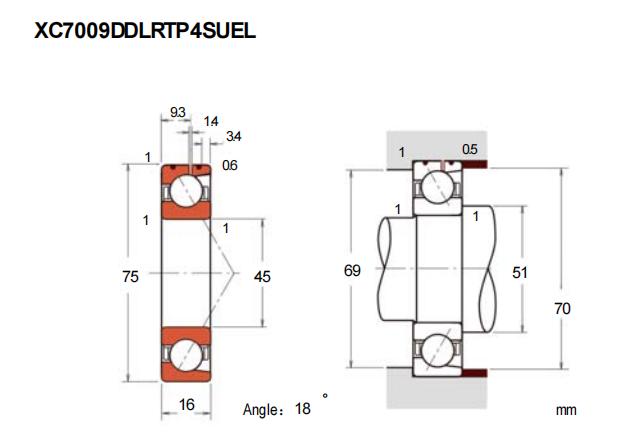 XC7009FLRTP4SU是一款超高精密角接触球轴承,其内径为45毫米,外径75毫米,厚度16毫米。该型号采用陶瓷球材料设计,具备优异的抗磨损性和高速运转稳定性,适用于需要高转速和高精度的工况。在油气润滑系统配合下,轴承能够有效降低摩擦热,延长使用寿命。