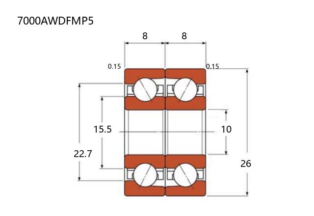 7000AWDFMP5型轴承属于超高精密轴承中的精密丝杠轴承类别,专为小型滚珠丝杠支承应用设计。其结构尺寸为内径10毫米、外径26毫米、厚度16毫米,紧凑的规格使其适用于空间受限的精密机械系统。